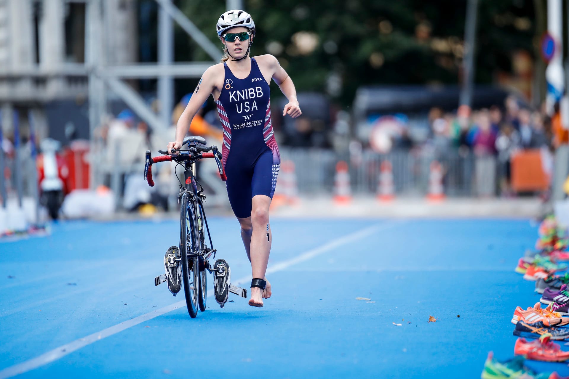 Knibb held onto the top spot through the rest of the bike leg, despite a small pack of women trailing her that contained the likes of Waugh, Sega, Therese Feuersinger (AUT), Hannah Knighton (NZL) and Olivia Mathias (GBR).